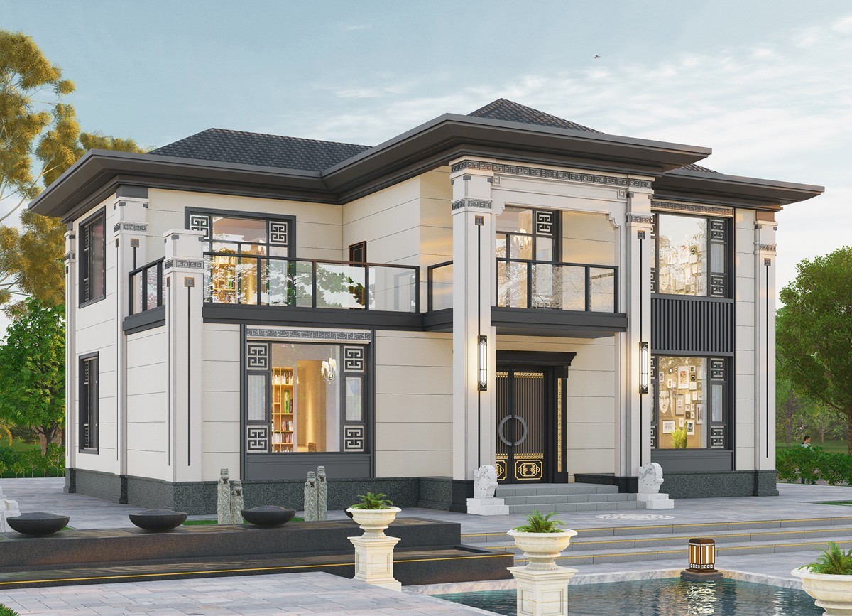 营山005 两层新中式(11.36x11.76米)-【易设计】